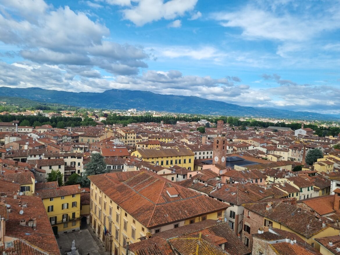 Veel mensen beklimmen de Torre Guinigi. Maar als je de Torre delle Ore beklimt heb je juist uitzicht op de toren met de steeneiken. Daarnaast kun je genieten van een prachtig uitzicht over de stad met haar gele huizen en rode daken. De Torre delle Ore is 50 meter hoog, maar het beklimmen daarvan is goed te doen. Je kunt ook de klok met bijbehorend mechanisme zien. Wij betaalden 6 euro per persoon om de toren te beklimmen.